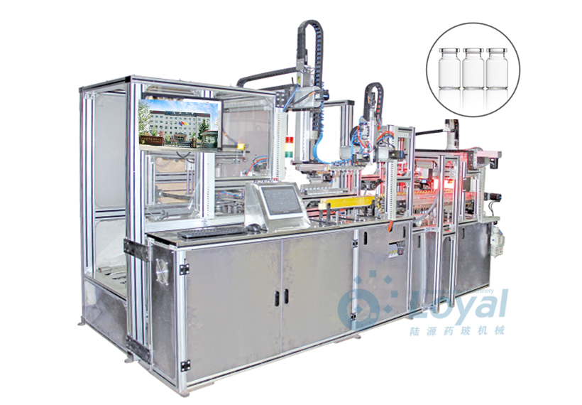 西林瓶生產(chǎn)線包括:自動上管、自動成型、經(jīng)機(jī)械手轉(zhuǎn)換至前端檢測線(也叫生產(chǎn)管控)、檢測線檢測的項(xiàng)目:1、瓶口內(nèi)外徑 2、瓶身長短 3、瓶身外徑 4、瓶口邊厚 5、瓶底內(nèi)凹尺寸檢測;經(jīng)檢測后的合格品再用機(jī)械手夾盤轉(zhuǎn)換至退火爐網(wǎng)帶上,經(jīng)高溫減除應(yīng)力后再降溫,通過氣動吸盤將回火后的小瓶轉(zhuǎn)換至后端檢測線,后端檢測(也是重檢也叫終檢),經(jīng)后端拍照檢測項(xiàng)目